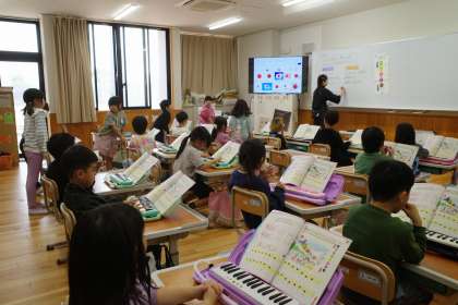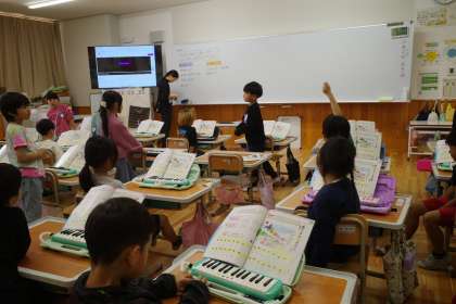 音楽の時間。「ひのまる」という曲を鑑賞して、聴き取ったことや感じ取ったことを交流していました。