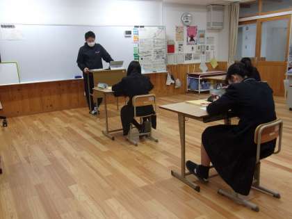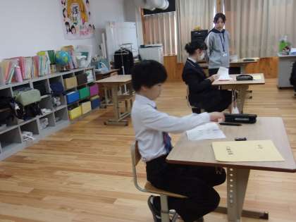 後期課程1組の授業は社会です。 地図記号のテストに臨んでいました。