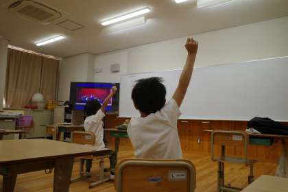この日も、鳴子を使って踊る映像を見ながら、手の動きを練習していました。