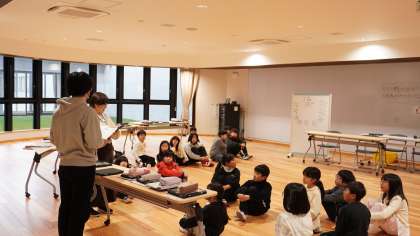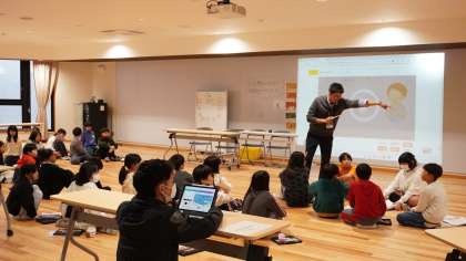 4年生は多目的ホールで英語の学習中でした。