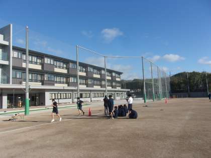 9年2組は体育の授業(持久走)です。 「がんばれーッ」と応援の声が聞こえる中、 一所懸命に走っていました。