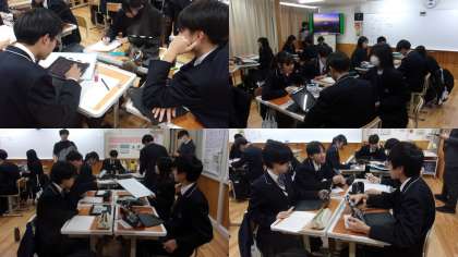 グループで意見を出し合い考えていました。