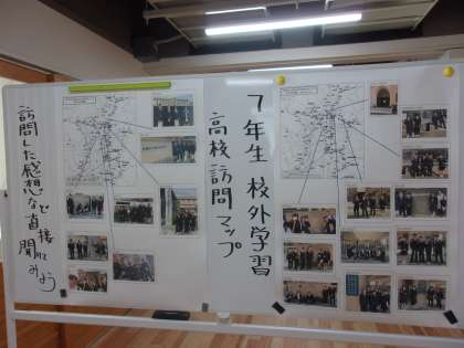 校外学習での高校訪問マップが掲示されています。