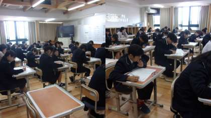 最後の英語のテスト中です。 最後まで集中して取り組んでいます。