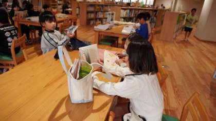 2年生は図書館で本を借りて、それぞれ読書をしています。