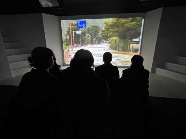 強風体験、水害体験、土砂災害体験の様子です。