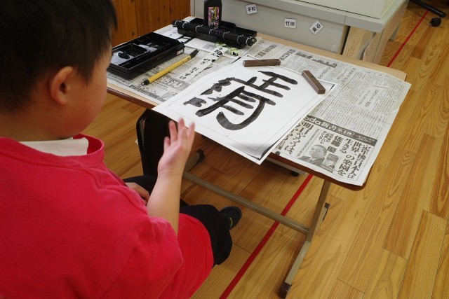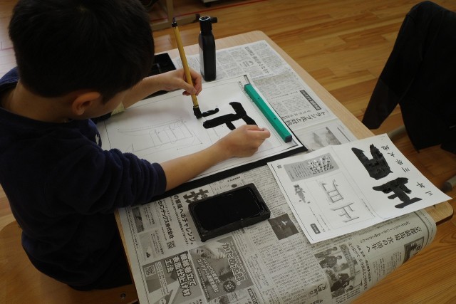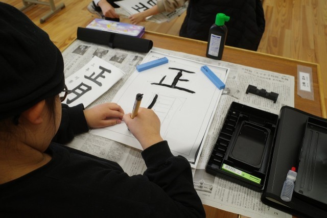 前期1組さんの授業の様子です。書写の学習で「正月」という文字に挑戦しています。