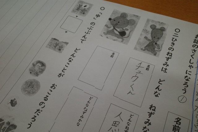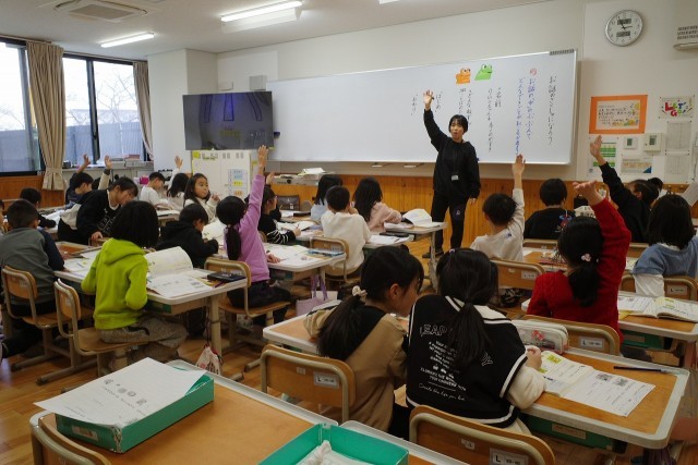 「お話の作者になろう」という単元で、お話作りに挑戦する2年生。今日は、二人の登場人物の「名前」や「性格」について考えていました。自分の意見を聞いてほしいのか、たくさん手があがっていました。