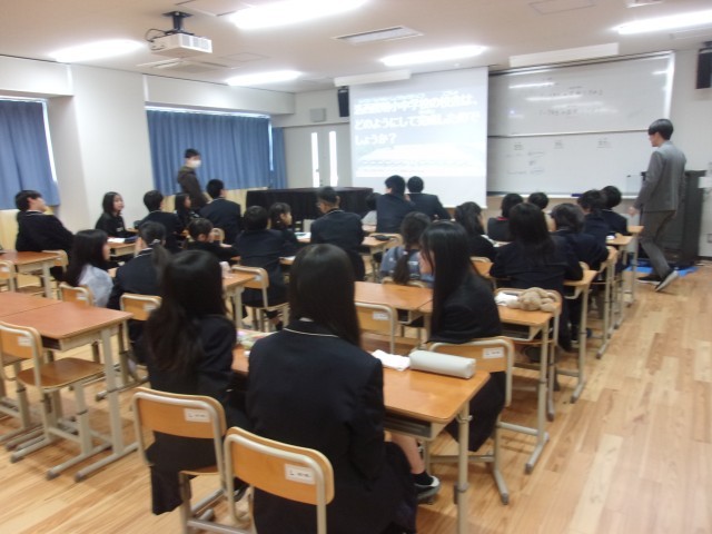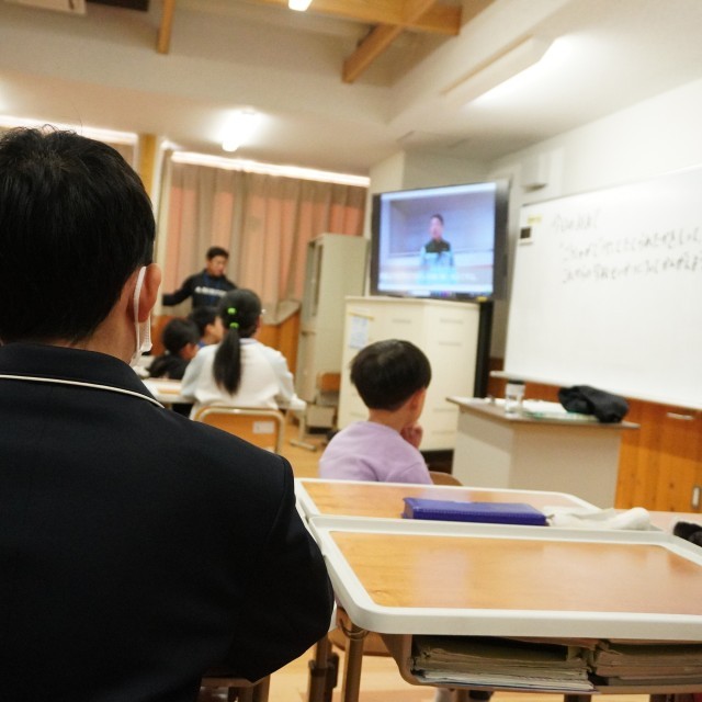 学校建設の指揮をとった方へのインタビュー動画を見て、この校舎がどんな人のどんな思い、どんな仕事によって建てられたのかについて学びました。これからは校舎をもっと大切に使いたいという気持ちをもった児童生徒もいたようでした。