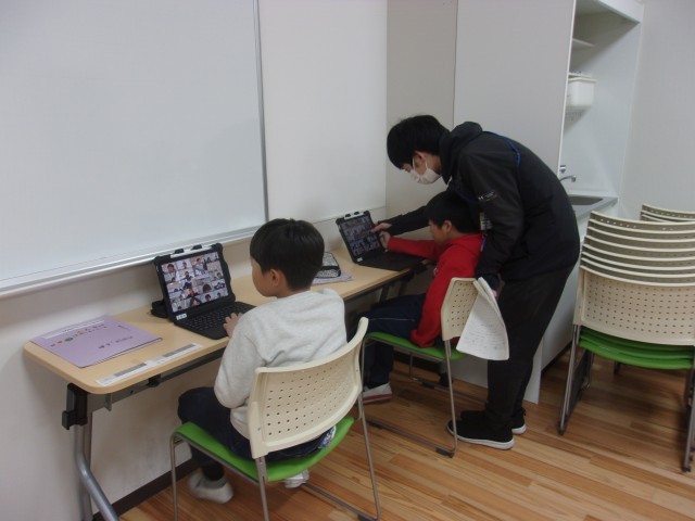 英語の学習で、他校の4年生とオンライン交流を行いました。緊張しながらも楽しんで交流する姿が見られました。英語を使ってつながる喜びを実感する貴重な機会となりました。