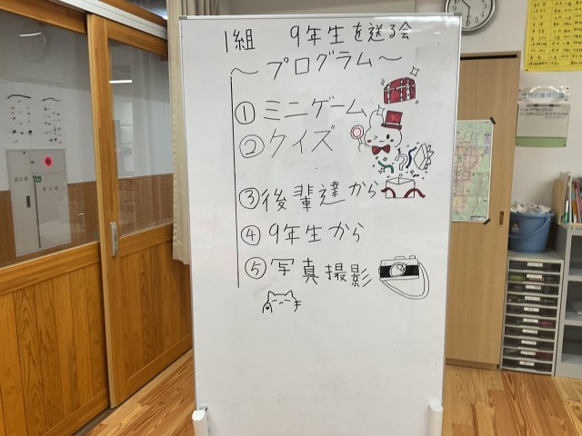 前期1組・後期1組合同で9年生を送る会しました。