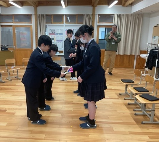 最後に後輩たちから折り紙で制作した花束を、9年生からは伸ばし縮みするスパイラルキューブをプレゼントしました。