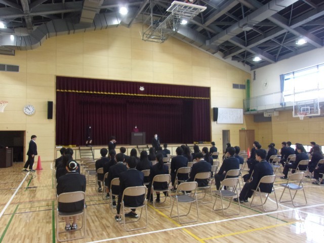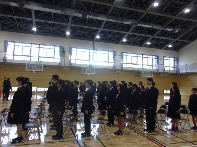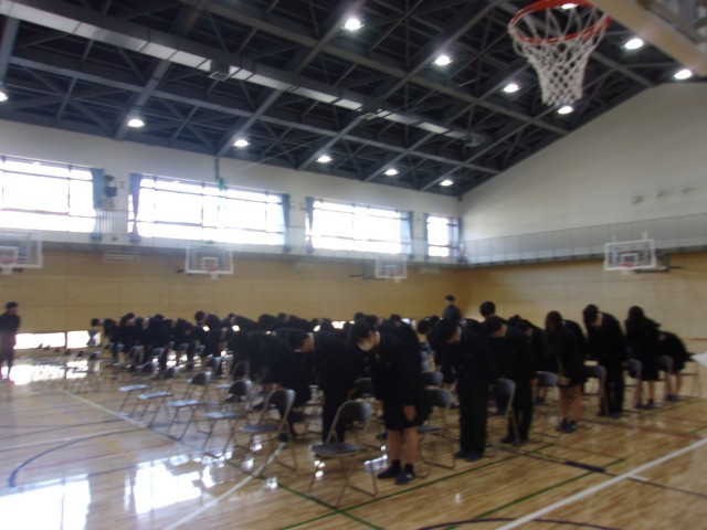 卒業式に向けて練習を行っています。真剣な表情で入退場や呼名の動きを確認していました。すばらしい卒業式をみんなでつくりあげましょう。