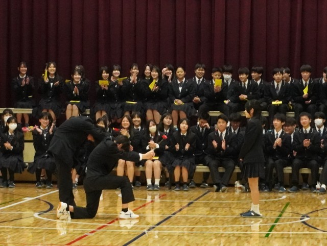 本日3時間目4時間目は9年生を送る会を体育館で行いました。