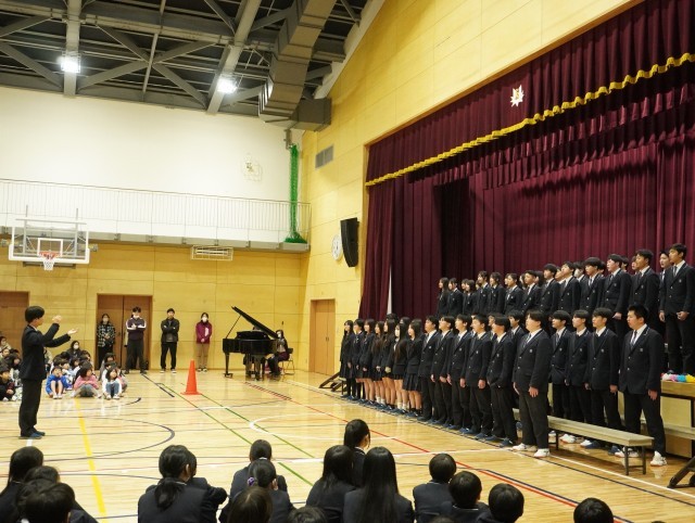 9年生から在校生へお返しの歌のプレゼントがありました。