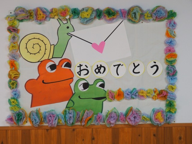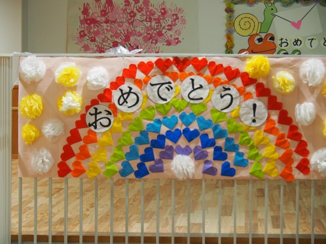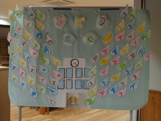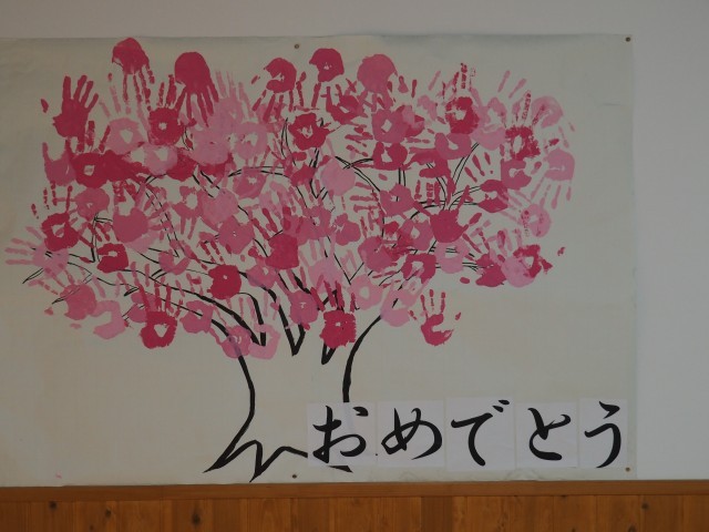 式場の外には、前期課程の児童が作成したメッセージが飾られています。