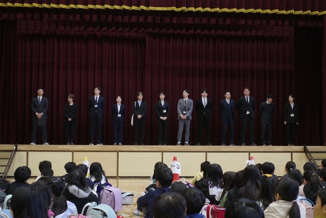 学年を担当する先生も紹介される場面では、子どもたちから思わず声が上がるなど、子どもらしい反応が見られ、会場は和やかな雰囲気に包まれました。