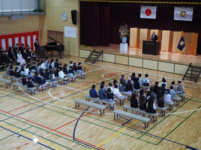 校長先生や来賓の方たちのあいさつをしっかりと聞くことができていました。