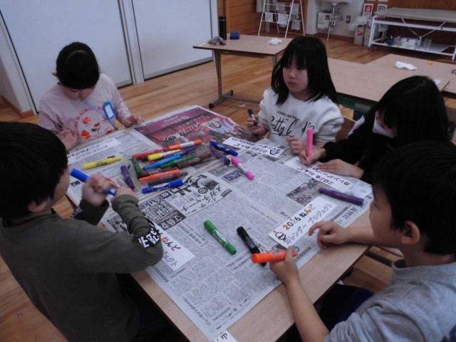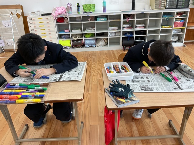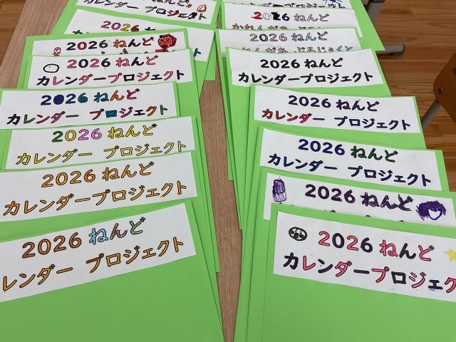 カレンダープロジェクトに向けて、台紙づくりに取り組みました。たくさんの枚数があったのですが、高学年が率先して「やる」と話し、すぐに作ってくれました。