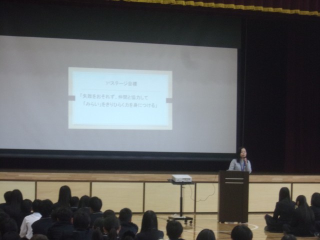 3rdステージ集会を行いました。しっかりと話を聞いている様子が印象的でした。最高ステージとして、これから洛西陵明小中学校を大いに引っ張っていってほしいと思います。期待しています。