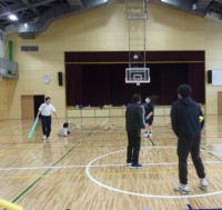 後期課程1組は、体育の授業です。 フロアホッケーに取り組んでいます。 教職員...
