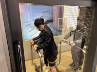 防災センターで様々な体験をしています。強風体験、水害体験、土砂災害体験の様子です...