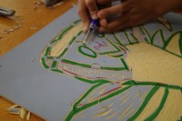 一心不乱に彫刻刀で彫り進めていました。刷り上がりをイメージし、どこを彫るべきか...