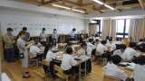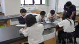 7年3組は英語の時間。 洛西陵明の校舎案内を英語でするにはどう表現するのか...