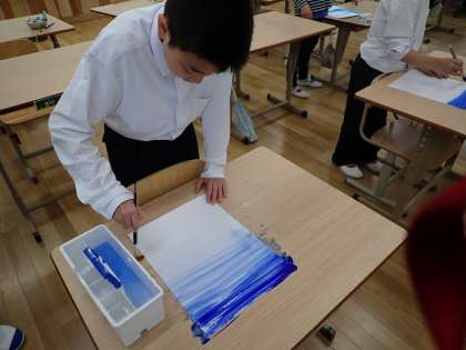 図工では絵の具と水を使ってグラデーションを描く学習をしました。