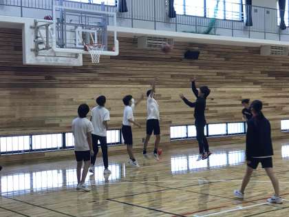オリエンテーションのあと,クラスによってはみんなでバスケットボールをしました。『怪我がないように』をテーマに,楽しく交流できましたね。
