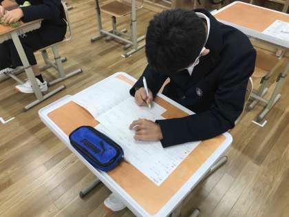 授業の様子【9年生数学】 公開日 2025/05/09 更新日 2025/05/09 学校の様子 数学の授業では展開の小テストを実施しました。 これまでいくつかのパターン(公式)について知り,練習してきました。 教え合って対策し,いざテストです!