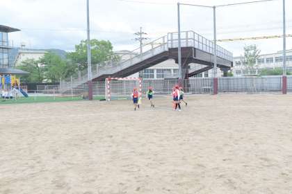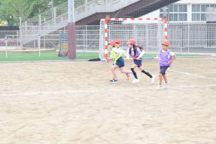 バトンパスがだんだんと上手になってきました。 スタートをきるタイミングをチームで考えています。