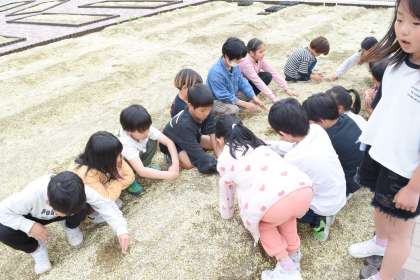 学校園にみんなで種まきをしました。