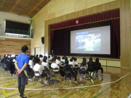 7年 自転車安全教室 公開日 2025/05/16 更新日 2025/05/16 学校の様子 大アリーナに講師の方をお迎えして、「自転車安全教室」を行いました。 栄桜小中学校近辺で起きた具体的な交通事故を例に挙げ、それぞれの共通点を考えることができました。 交通事故にあわないように、交通事故を起こさないように大切なことをたくさん教えていただきました。 自転車は便利な乗り物ですが、乗るときは、「緊張感」「責任感」をもって、運転するようにしましょう。