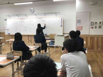 授業の様子【9年生数学】 公開日 2025/05/21 更新日 2025/05/21 学校の様子 展開・因数分解の基礎を学び,小テストに臨んでいます。教え合いや家庭学習をいかして目標の得点を突破してください。