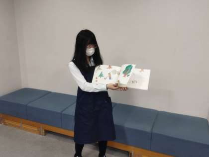 今日は絵本の読み聞かせをするために講義を受け、練習しています。