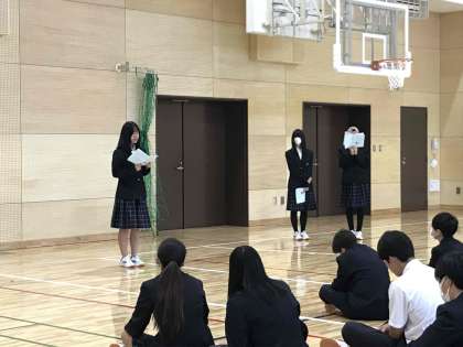 修学旅行から一夜明け,解団式がありました。事前と事後を比べると,“聞く姿勢”が明らかに変わったと多くの教職員が感じました。集団として行動することから,「周りを思いやる」という力がついたのかなと思います。これを日々の学校生活にもいかしていきましょう。