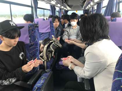 修学旅行【総集編(2)】 公開日 2025/06/06 更新日 2025/06/06 学校の様子 移動の時間をふりかえると,カラオケ大会があったり,事前にとっていた修学旅行への意気込み&リクエスト曲を紹介する時間がありました。たくさん買ったお菓子をみんなでシェアしたり,トランプ・・・映画・・・と,とても和気あいあいとした時間となりました。