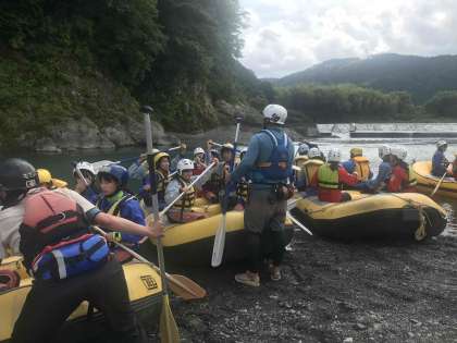 初日のビッグイベントはラフティングでした。各ボート、声を合わせて一生懸命漕いだと聞きました。出発・ゴールの表情を見ていると充実した時間を過ごすことができたのだろうなと感じました。日頃感じることができない“自然”を味わえましたね。