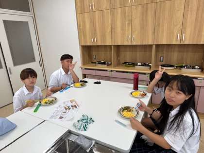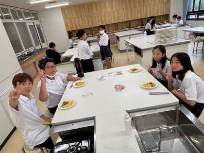 「もう少し炒めてもよかったな。」「好みの固さのスクランブルエッグができた!」などと調理実習を振り返ることもできました。
