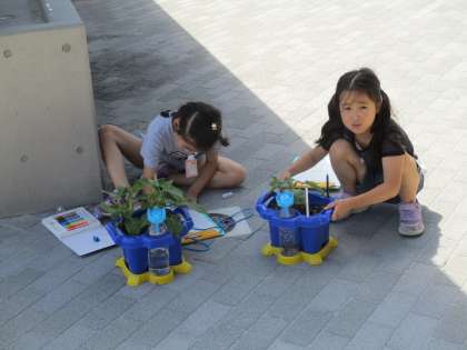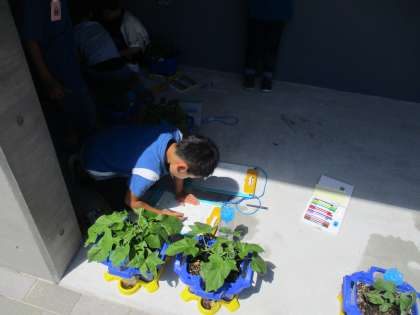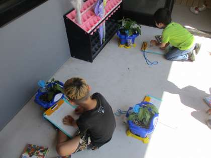 はっぱが増えてきたアサガオの観察をしました。