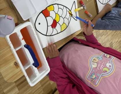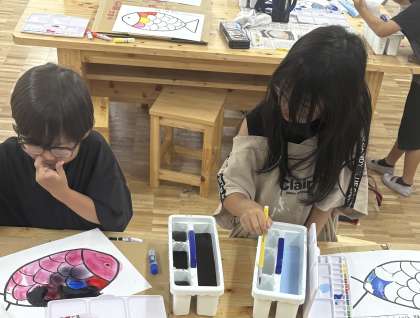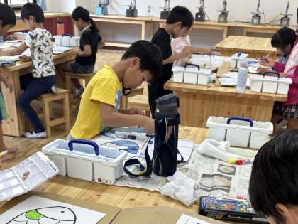 この日は,魚のうろこに好きな色を塗って,自分だけの魚を作りました。