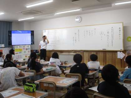 4年生 京都新聞社記者を招いて 公開日 2025/07/03 更新日 2025/07/03 学校の様子 京都新聞社メディア局 記者の方をお招きして、「新聞づくり」のポイントを教えていただくことができました。「タイトル」と「見出し」の違いを具体例を示していただいたり、取材するときは、「楽しんで」することが大切であることを教えていただいたりしました。 これから、各教科で新聞にまとめる、ということがよくありますので、今回の学習を生かしてほしいと思います。