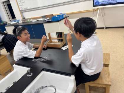 理科の学習では、さまざまな水溶液について調べています。みて観察、においを嗅いでみるなどをして違いを見つけました。次回は蒸発させてみます!