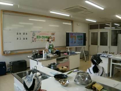 5年 家庭科「エコクッキング」3 公開日 2025/09/08 更新日 2025/09/08 学校の様子 エコクッキング2組の様子です。初めの話はクイズを交えてお話ししてくださったので、楽しんで聞き入ってました。