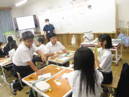 6年 共創「未来にむかって」(2) 公開日 2025/10/02 更新日 2025/10/02 学校の様子 各グループで、決められた時間と手順でドーナツをどれぐらい作れるか試しました。1回目は協力せずに、2・3回目は話し合いをし役割り分担などを決めてから作りました。3回目には商品として売れる数が増え、不良品が減ったという班が多かったです。