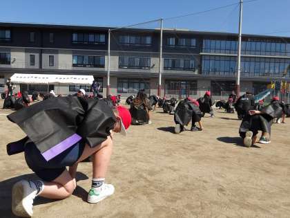 運動場での練習がスタートしています。色々な道具も身に着け、子どもたちの気合いも高まっています!