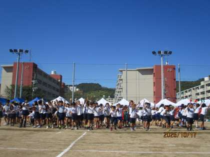 2曲目は「ヌーの暴走」。ヌーになりきって運動場を走り回って表現しました。