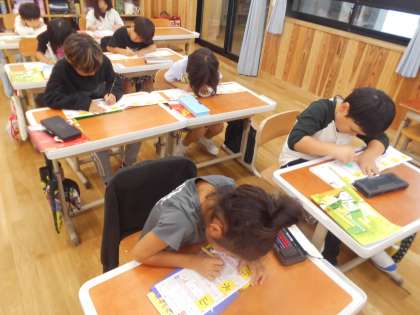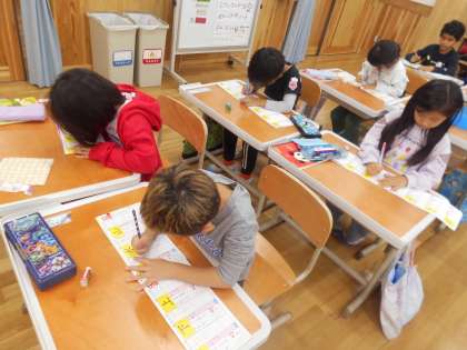 書き順やおへやを意識しながら、一文字一文字丁寧に書きました。書く時の姿勢や切り替えもとても素敵です。
