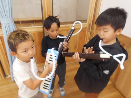 1年 せんりつでよびかけあおう 公開日 2025/10/23 更新日 2025/10/23 学校の様子 鍵盤ハーモニカで会話をしました。すきな音を三つ決めて、たくさんの友達とよびかけっこをしました。オリジナルのメロディーが完成しました。